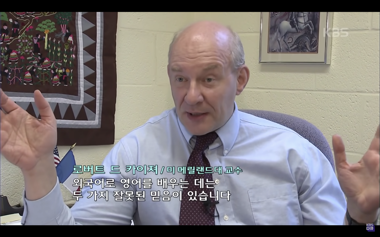 '외국어로 영어를 배우는 데는 두 가지 잘못된 믿음이 있습니다. 하나는 영어를 몇 주만에 배울 수 있다고 하는 것이고, 다른 하나는 어른이 되면 언어를 배울 수 없다고 하는 것입니다. 사실 영어를 배우는데 가장 효율적인 마법과 같은 연습방법은 없습니다. 단지 실제 대화는 것과 같은 방법이어야 하다는 것의 경우 배우는 사람에게 너무 어렵거나 생소해서는 안 된다는 것입니다. 사실 굉장히 단순하게 들립니다. 하지만 그게 그리 만만하지는 않습니다.' - 로버트 드 카니져 (미 메릴랜드대 교수) -