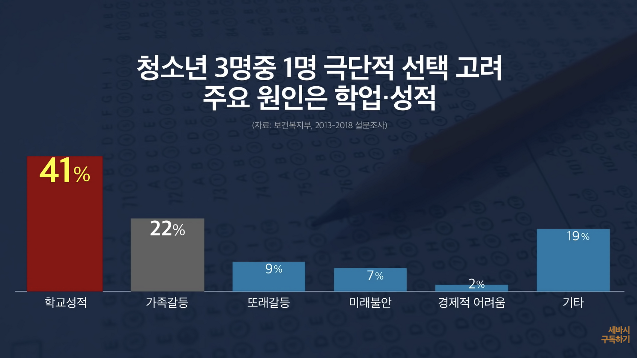 청소년 3명중 1명은 극단적 선택 고려 주요 원인은 학업 성적