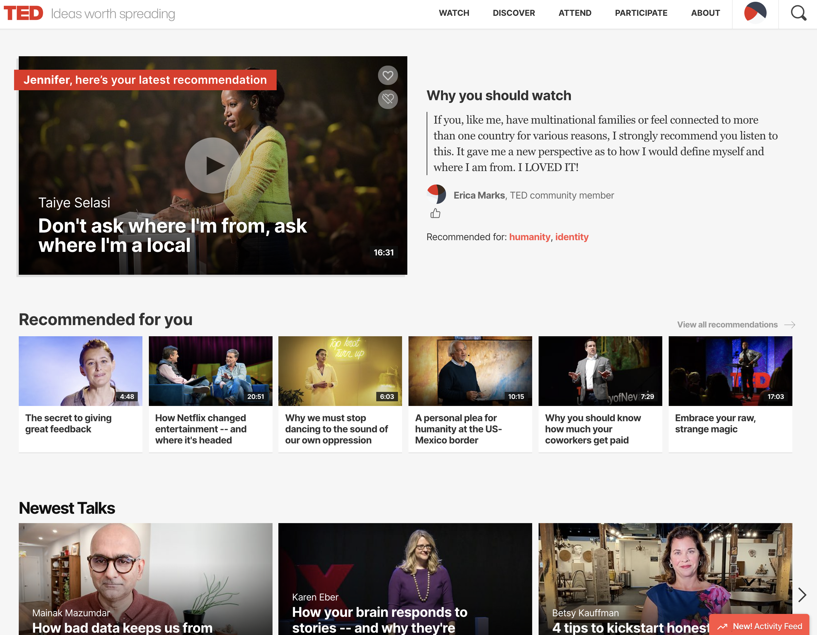 TED 메인에서 추천하는 기능도 있고, 회원 가입 후 태그로 내 관심분야를 등록해두면 그 분야를 추천해줍니다. 또, 좋아요나 내 리스트에 관심 영상을 찜해놓고 나중에 볼 수도 있어요! 보통은 TED Talks에서 많이 찾는데, TED Ed는 중고생도 쉽게 보기 좋고, 입문자에게 좋으며TED x는 TED에서 라이선스를 받은 기관에서 진행을 하는 톡이며 큰 차이는 없습니다.
