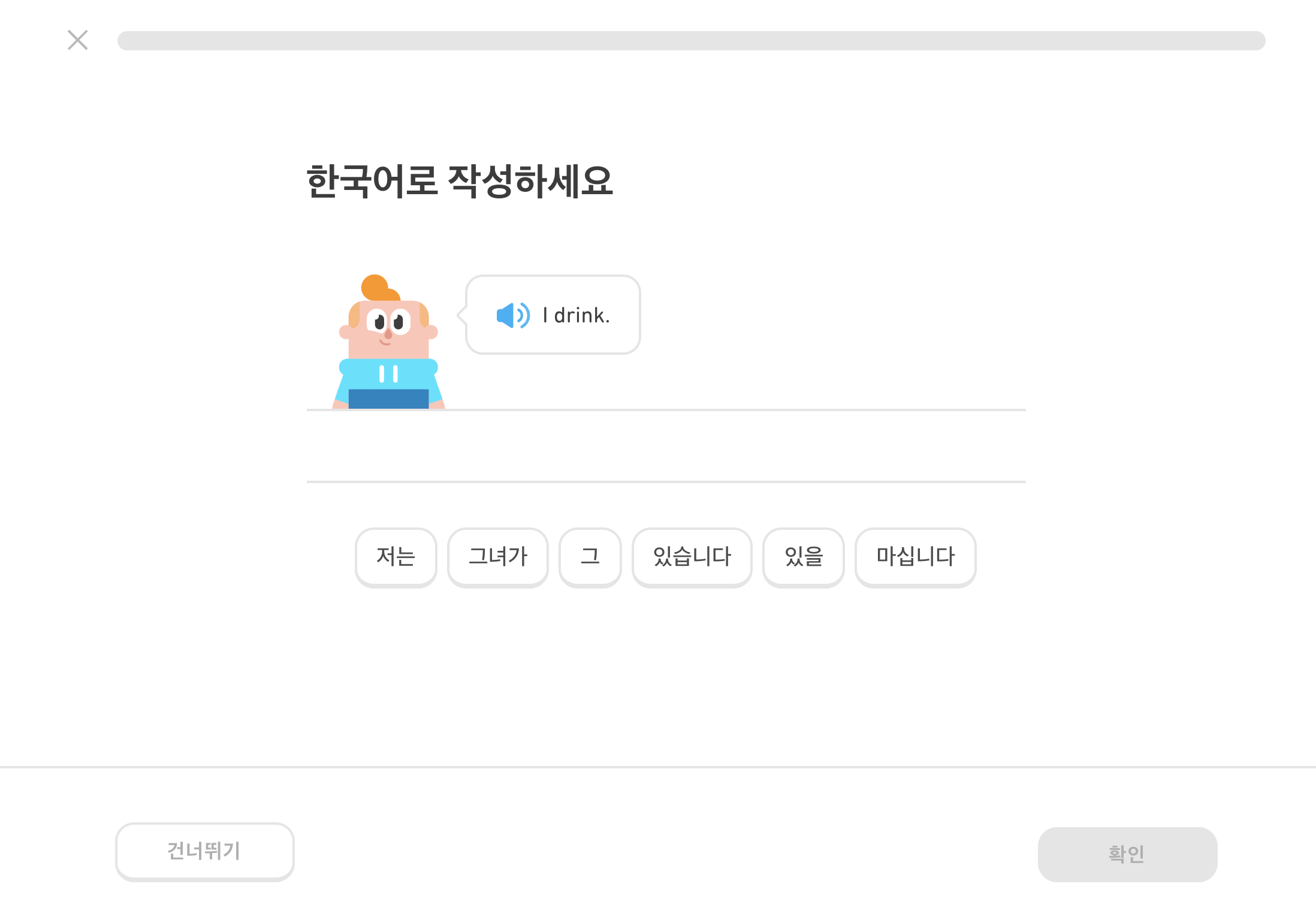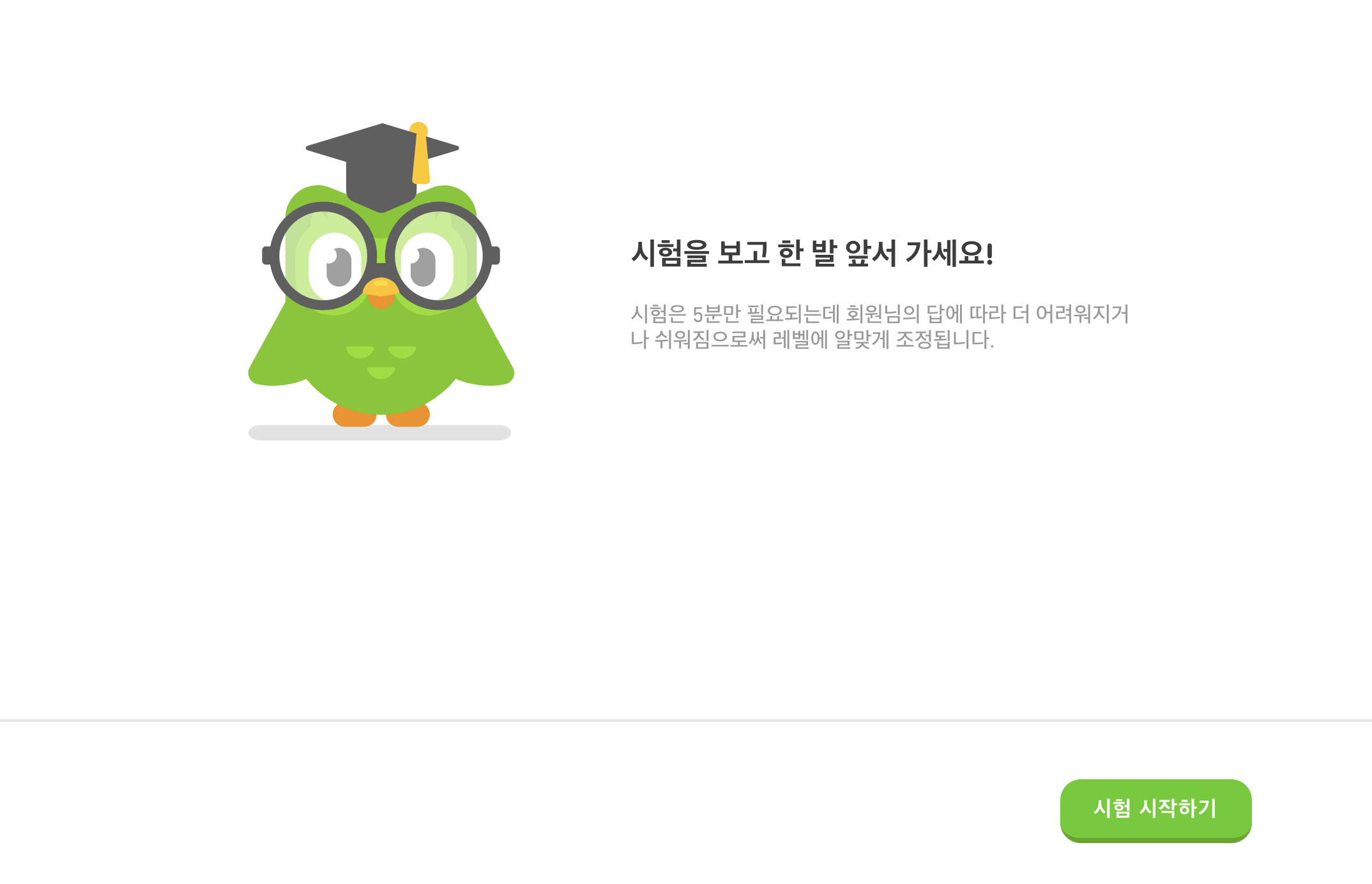 듀오링고 레벨테스트 시작하기 화면