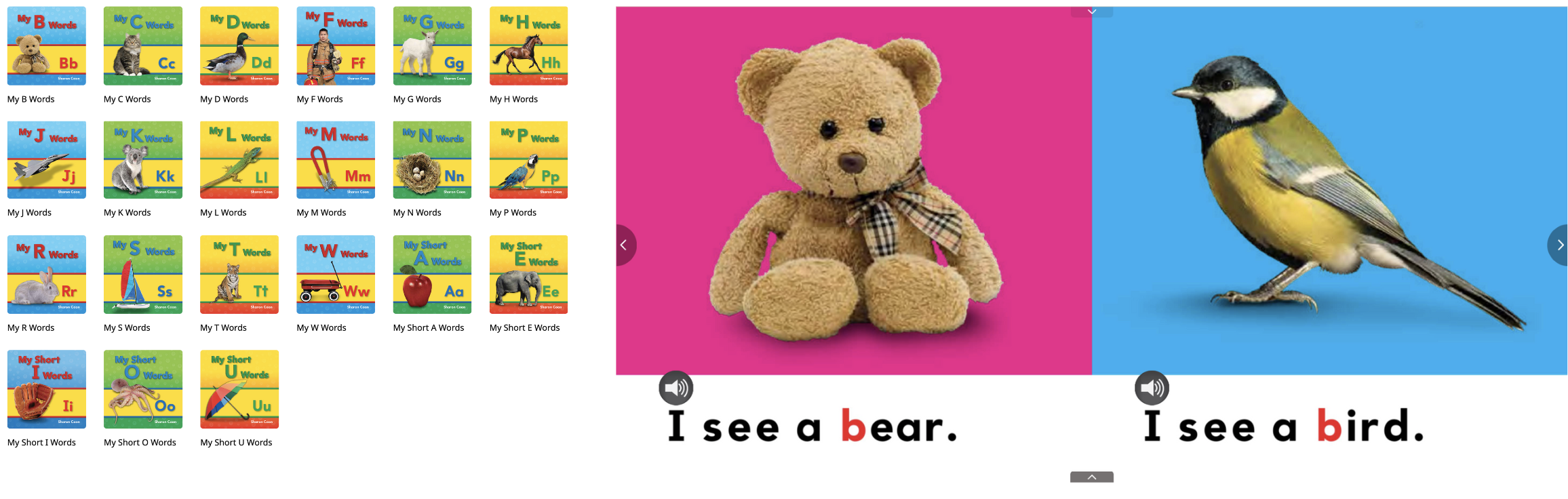 My Word Readers : PreK-K 는 미국 유치원생 수준의 자주 사용되는 어휘를 간단한 문장을 반복하며 연습할 수 있게 해 줍니다.